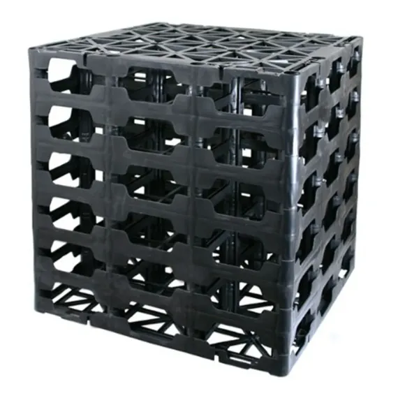 Vaak wordt ook een bladvanger of zandvanger geplaatst tussen de regenpijp en de kratten. Dit voorkomt dat vuil het systeem verstopt.
